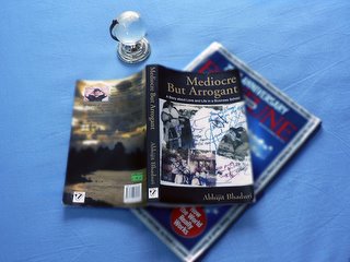 Vairamani Pandiyan, my buddy who is a great photographer and someone who is always at the forefront of what is new on the Net and also claims to have read every joke on the Net at least twice (why? does he not get it the first time?) He has got some amazing photos on his page http://www.flickr.com/photos/pandiyan/60315594/He writes his review of MEDIOCRE BUT ARROGANTIsn’t it great to have a celebrity as a close friend? It sure is. He tells me he signs girls’ T shirts!The book shown here is waltzing in the bestseller lists along with Dan Brown and JK Rowling. Written by someone with whom I spent the best years of my corporate life, doing exactly what the characters in the story do. Wise-cracking, irreverent and carefree, making fun of everything, making puns at every turn and working once in a while. Mediocre But Arrogant; not exactly but something like that.Want to know what really happens in the hallowed halls of a big-name business school? Don’t go for titles like ‘What they really teach you at Harvard’ and such. Truth is out here. MBAs. These marauders, turned out by the dozens by business schools, invading the corporate corridors, stalking the boardrooms, weaving their web of mesmerizing magic and devilish deceptions, have effectively transformed the business organizations into powerful institutions with an ‘A’ in economic results and ‘F-‘ for humaneness. Where do they come from and how are they made? Get an insider’s view.On a personal note, Abhijit is Anything But Mediocre. Jack of many trades and Master of caricaturing. Puns, limericks, silly skits, jokes, cartoons – he got me into many of those. When I torture some of my Flickr contacts with silly never ending puns, it is Abhijit who is to be blamed. But then I must admit that some his jokes are good. Otherwise serious publishing houses wouldn’t have bothered to publish his writing throwing good money. Then again, it may be bad money and may be his jokes are the kind people like and goodness has nothing to do with it.Meet Abhijit Bhaduri. Do read his blog for a flavour of the book. What next Abhijit? Syndicated columns, movies, Abbey dolls…. Sequels definitely, I reckon. Speculating in possible titles… Well, the protogonist is likely to graduate and step into the corporate world. So Married But Available, Mean Beast Always, Mayhem Bedlam And …. You are welcome to suggest. I’ll get him to send you a free copy if he likes your title.Thus spake Pandiyan and I loved some of the comments and suggestions his readers had to offer…Someone who mysteriously signs as 42n81 said:i love it that someone wants to stick it to the MBA’s. it’s a bad brotherhood of academix who couldn’t make it in the real world from day one . . .i will buy this book, it’s a promise 🙂i think an Abbey Action Figure would be nice as a next step . . . big money in those. Fun for kids of all ages. Abbey comes complete with a lot of Smoke & Mirrors, its own set of crocodiles they cry real tears !, cute Super-Hero suit with the motto “Looks great in Theory” embroidered in real plastic, a full set of two gleaming hatchets to axe unsuspecting vested limbs of corporate entities, and gold velvet Commando Rope to pull cronies into cushy over-paid positions, or better yet, as Consultants!!!Watch Abbey contribute chaos as he doles out money to same age-group peers that look strikingly like him! It’s up to you to determine if Abbey’s mission is actual corporate deconstruction or simply well-executed preservation of the peer species. Is Abbey doing it to create a loss-leading tax shelter or it is just because Abbey doesn’t know how to really work?As if that weren’t enough . . . wait, there’s more! If you buy the introductory Abbey Action Figure set today, you can get Abbey’s Blood Red Corvette complete with special Personalized Parking Lot sign for half price. Thanks dude!! Some of those suggestions certainly make sense. Will help fund the sequel – Abhijit