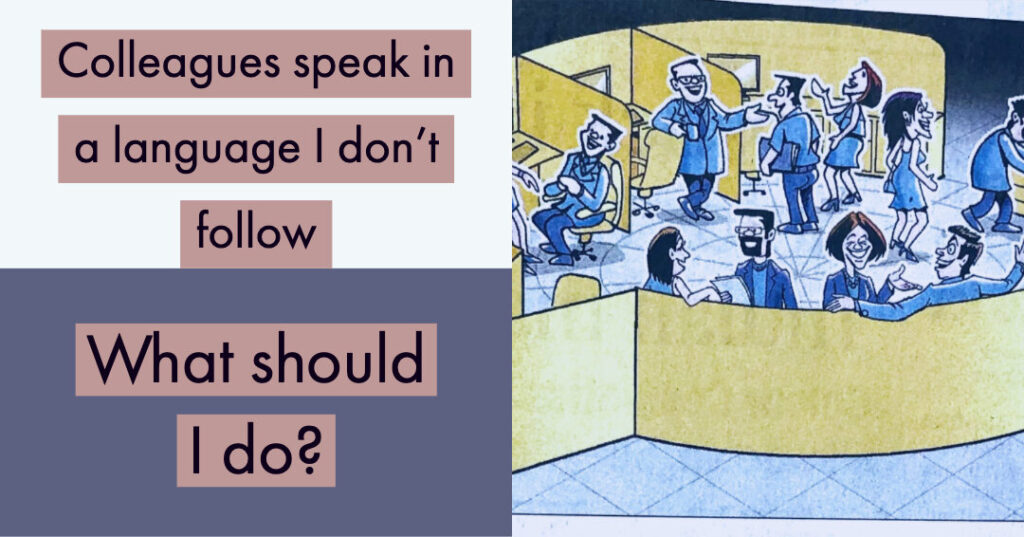 Using a “pull method” is always better than throwing the rule-book at your colleagues. Besides, it is not illegal to speak in a different language. You may not be able to control how your colleagues behave, but you can control your response to the situation.