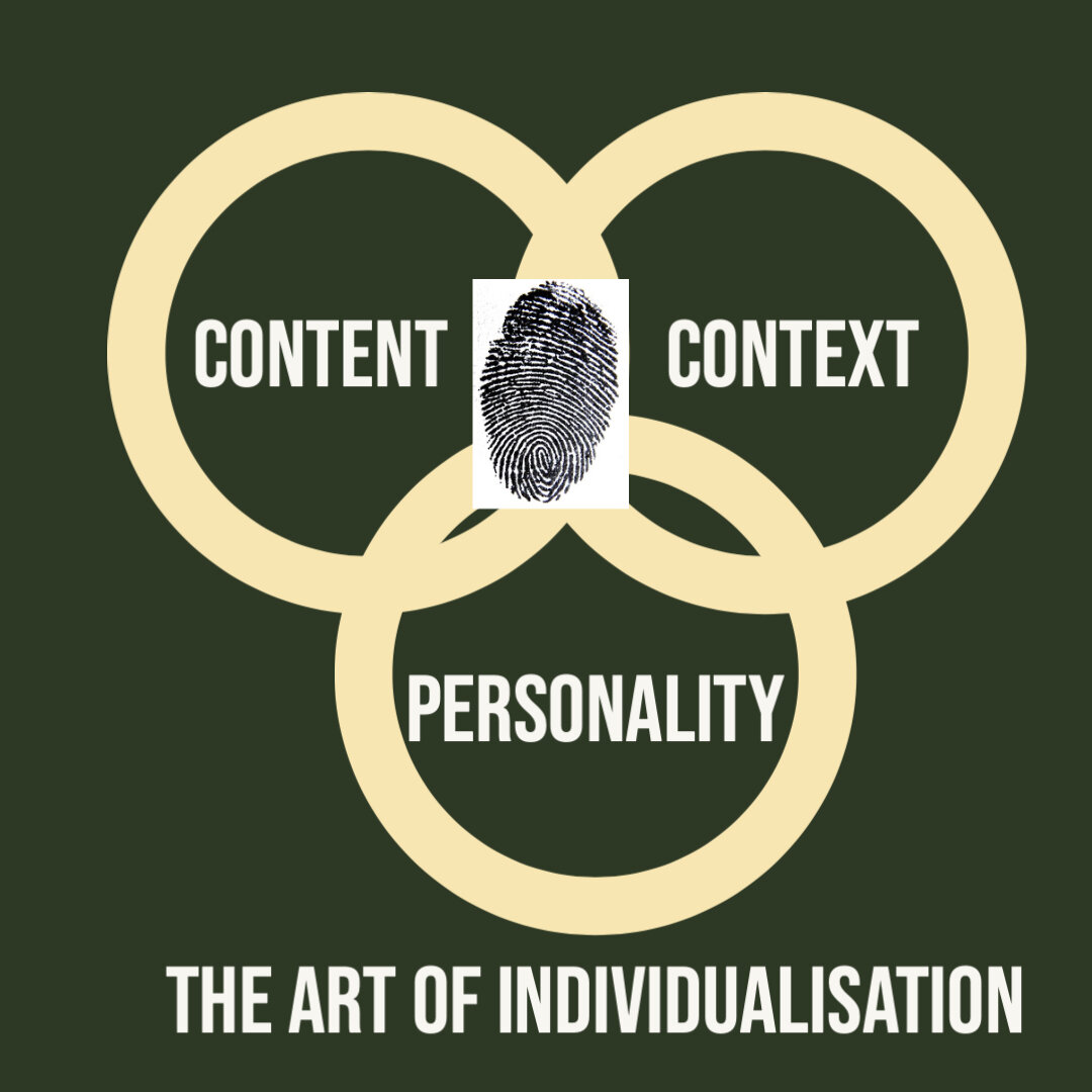 When the product or service is tailor made for an individual and is so specific that it would not be applicable to anyone else, we are individualising the product or service or experience. Biometric identification like fingerprints, leverage the uniqueness of the individual. Even identical twins have different fingerprints. Individualisation happens at the intersection content, context and personality.