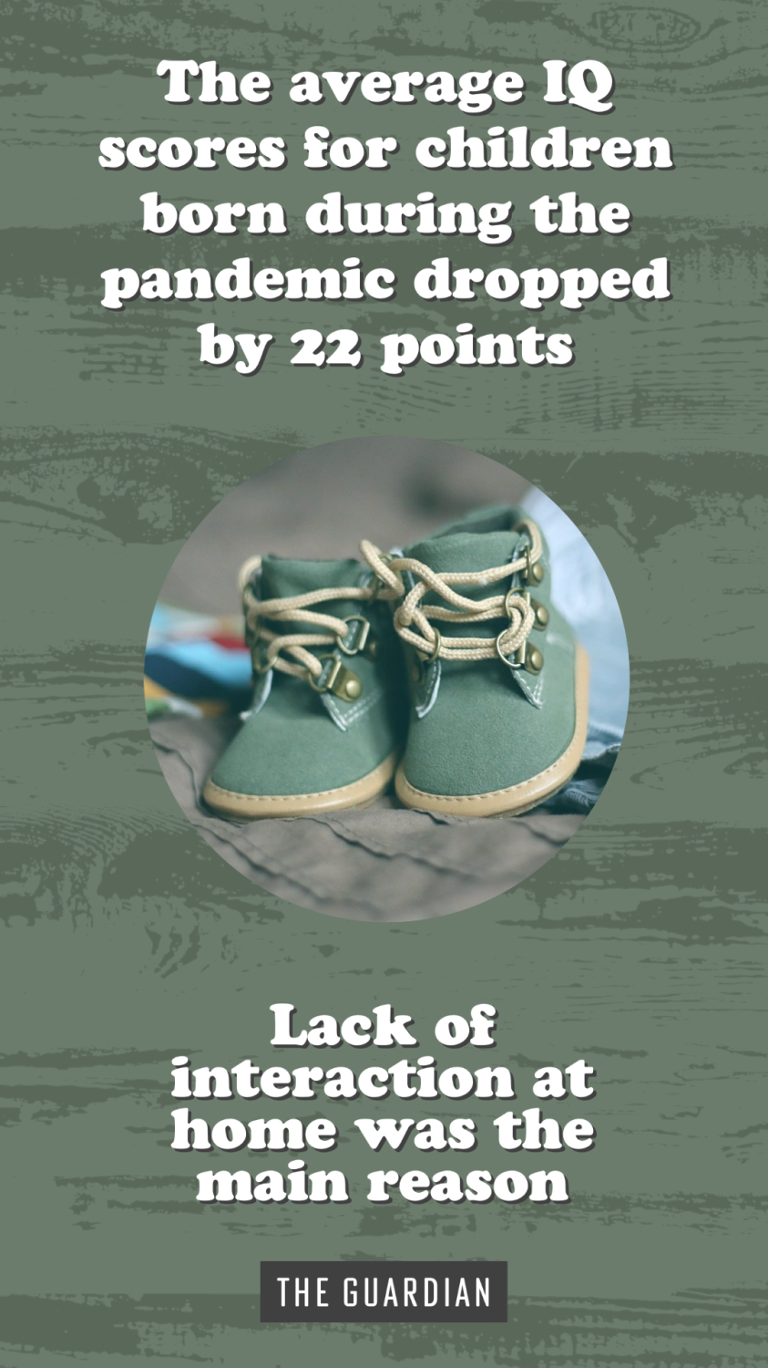 Closure of businesses, nurseries, schools and playgrounds meant considerable impact on parents. With stressed out parents trying to manage uncertainty and financial stress, there was lower stimulation at home and less interaction with the world outside for the kids. Worldwide, 1.6 billion children have been affected by school closures. The IQ scores of pandemic-era children dropped almost 22 points.