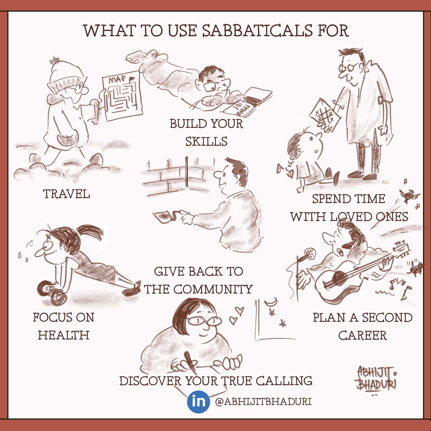 Sabbaticals are opportunities to get traction on the path you have been. You could use the time to reskill and upskill yourself. Or get the credentials needed to pursue a different career path. Some people use sabbaticals to plan their second career or to spend time with the family. Sometimes burnouts can be caused by the need to be a caregiver to a loved one. A friend chose to take time off to be with a terminally ill parent and put closure.
