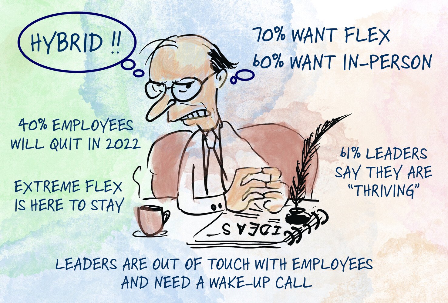 People want flexibility and they want to be together … at times. They miss the in-person socialising and mentoring. They don’t want to commute to work. The internet connections at home are awful. So no one puts on the camera. So virtual meetings and training programs are not as effective and certainly not as much fun. I can sense the frustration in the voice of the head of India’s largest executive search firm.