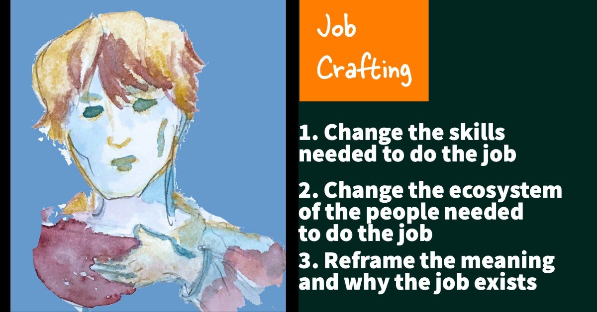 Allowing everyone the chance to do a side-hustle within the organisation may be great to build skills. Job Crafting can be done by changing the knowledge or skills needed to do the job. It can be done by changing the relationships that must be built to do the job. A skilful coach can help reframe the meaning behind the job.