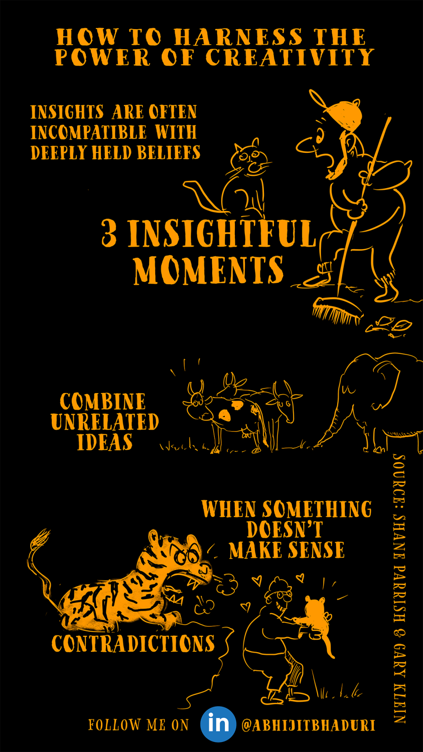 Check out the TEDx talk by Gary Klein about what he calls “Lightbulb Moments”
