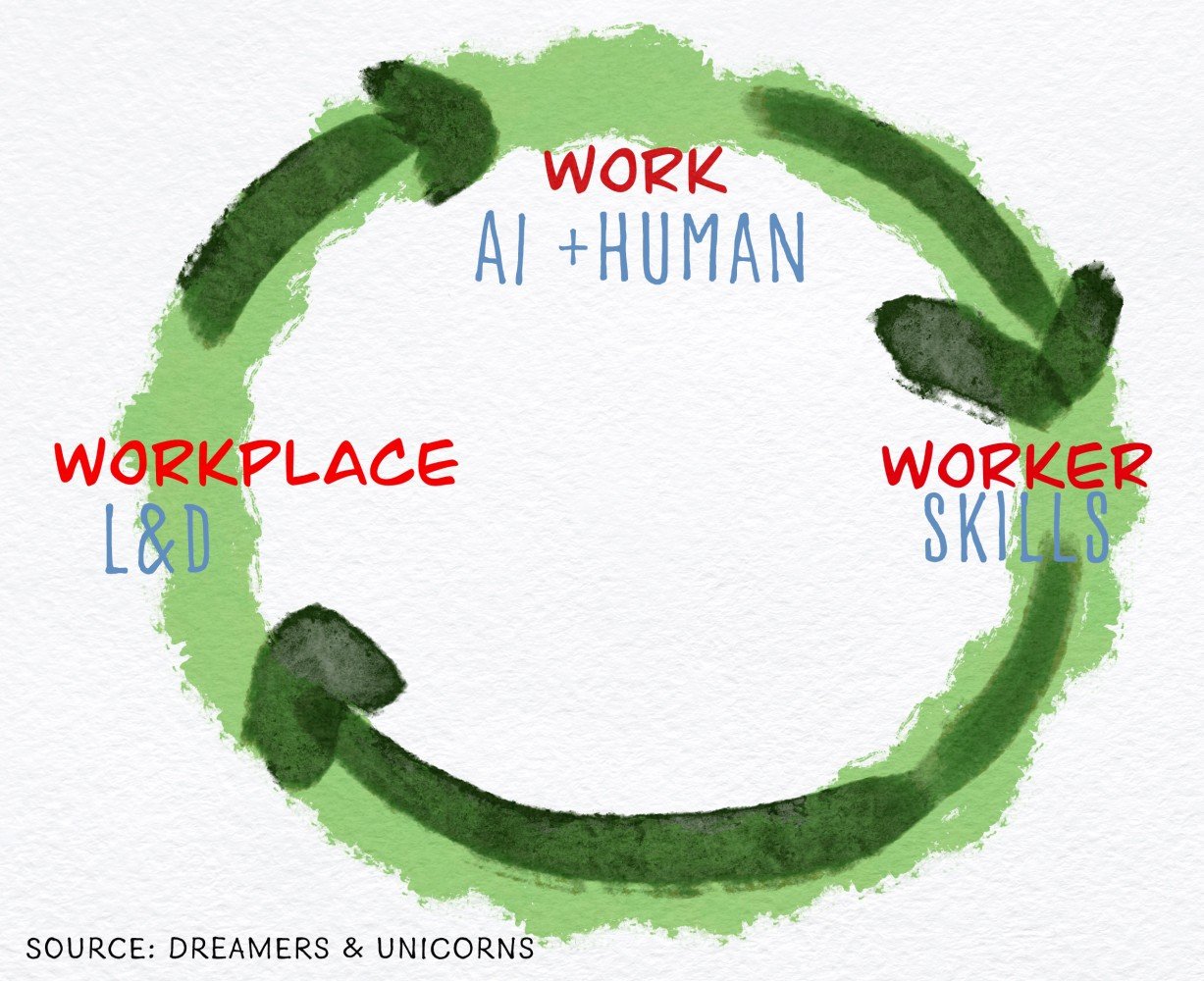 When the way we do work changes, it changes the skill base of the talent pool (I have used the term worker as a generic term). The workplace needs to leverage its L&D teams to keep the employees reskilled, upskilled and employable.