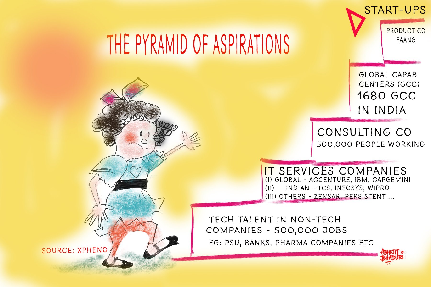 In my weekly show on Talent & Tech, I had Kamal Karanth the Co-Founder of Xpheno the staffing and recruiting firm to talk about the Aspiration Pyramid of tech talent in India. Here is what the looks like. This time we dug deeper into the opportunities for careers in the Global Capability Centers. This is a thriving area of opportunity. <Watch the conversation>