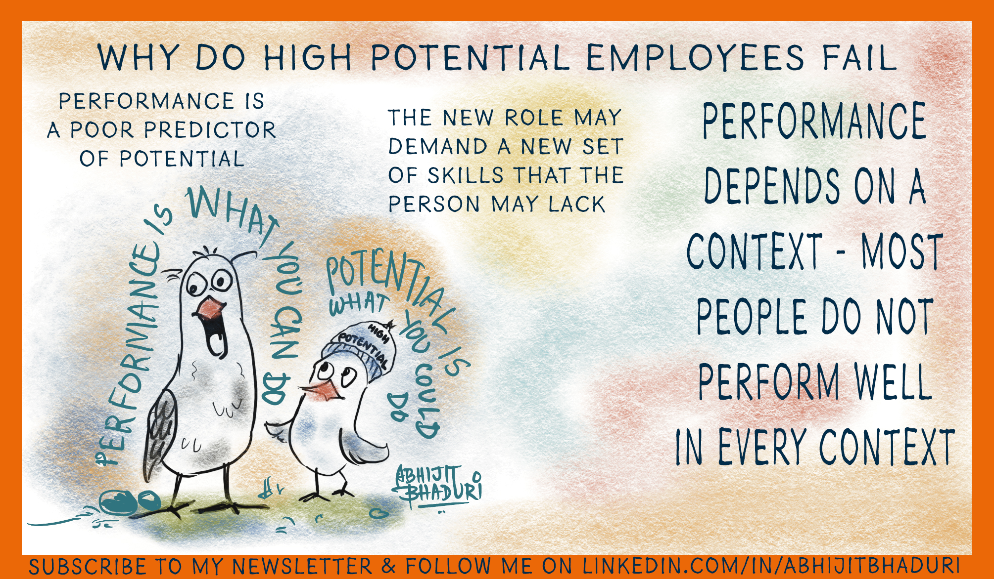 We often equate high performance with high potential. But as this sketchnote highlights, that’s not always the case. Someone might excel in their current role, but struggle when promoted to a position requiring a different skillset.