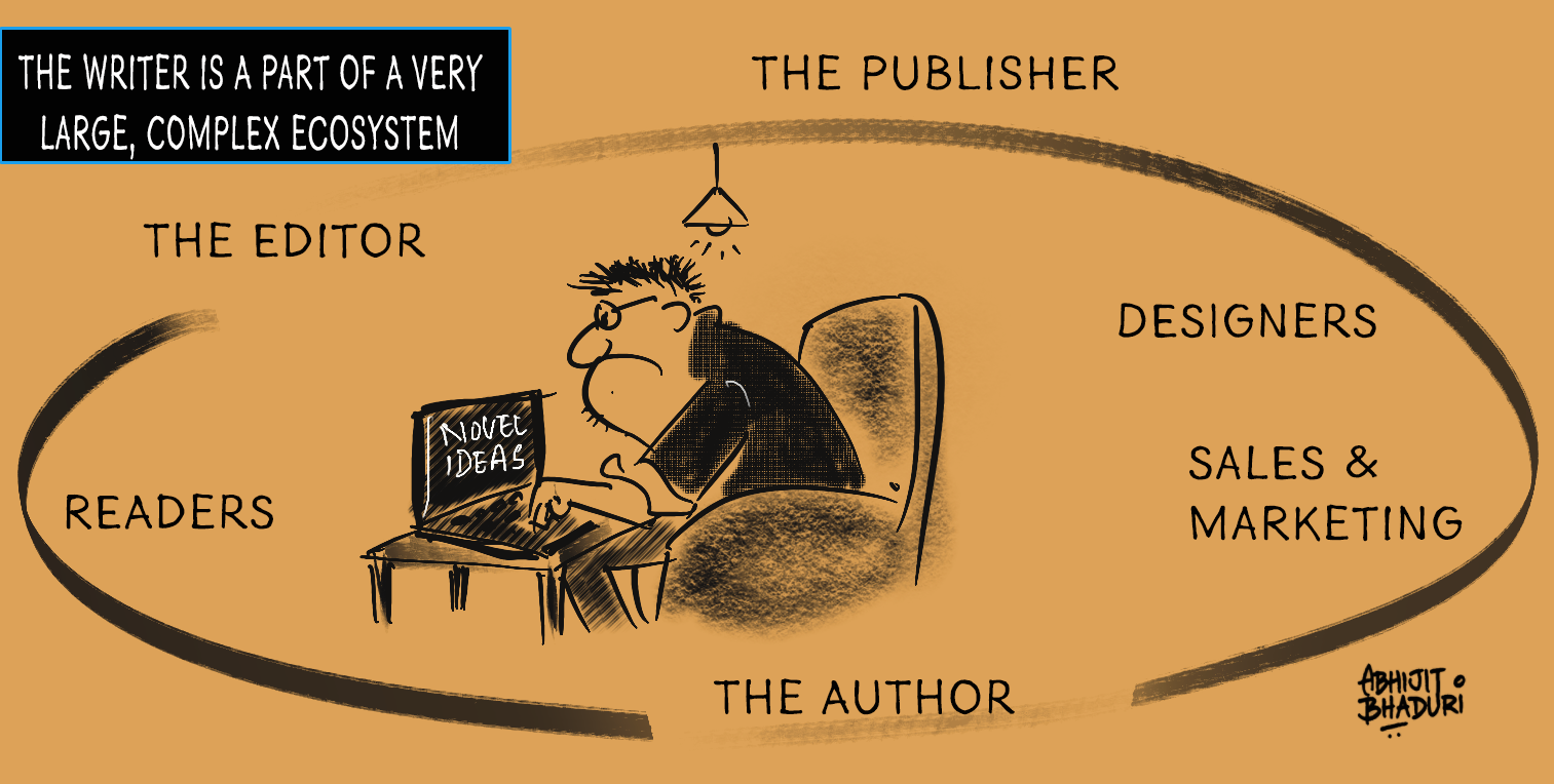 Think of the number of people who take the author’s manuscript to the bookstore. You would imagine, writing is a solitary activity. It is not. The book’s success depends on several people in that ecosystem.