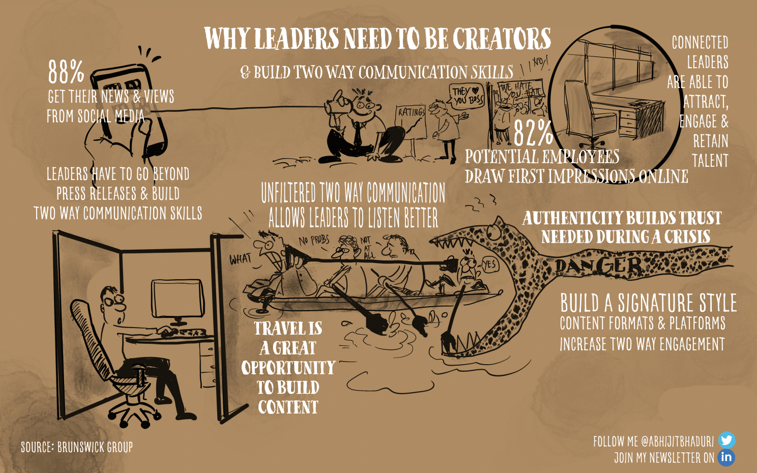 6. Use social media to reflect the DNA of the organisation: Using social platforms to talk about messaging beyond the business helps build a human connection. Most leaders travel for work. It is a great opportunity to create content that connects with people. It is also a great way to showcase the culture of the organisation. It is important that the messaging reflects the reality on the ground. Else this can backfire and erode trust equally fast.