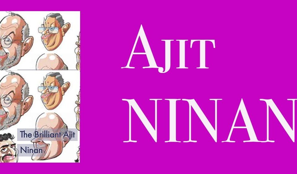 The morning newspaper and a cuppa chai is a ritual that is common to a large part of the human race. But people read it in their own manner. Some glance at the headlines and head straight for the sports page. So open the editorial page and shake their head disapprovingly at the affairs of the world. I head for the cartoons. I grab the newspaper and head straight for Ajit Ninan's cartoon. I look for two elements of wit in a cartoon - the visual and verbal. Ninan excels in both. Usually one lands up choosing between the two. Ajit worked for many years with the India Today group as cartoonist and illustrator, before moving to the Indian Express newspaper in 1992 eventually switching to Outlook one of India's top news magazines. He is now with The Times of India as their Chief Graphics Consultant. Ajit used to run a cartoon strip called Detective Moochhwala (and his tail-less dog called Poochh, which means tail in Hindi) for the childrens magazine Target. That comic strip had cult status amongst readers and it was amazing to see Ajit pack in a tight storyline and brilliant graphics in about 35-40 frames.
