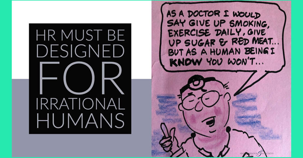 Look around and see how much has changed about work and the worker. It is a clear signal that we need to redesign HR. So drop the assumptions of rational human beings. Maybe we will call it Behavioral HR. Google already has taken a lead in this space by starting a lab called Irrational Lab. Maybe it is time for all organizations to start one too where HR will remove outdated policies and replace them with ones that assume people do not make rational choices (mostly).