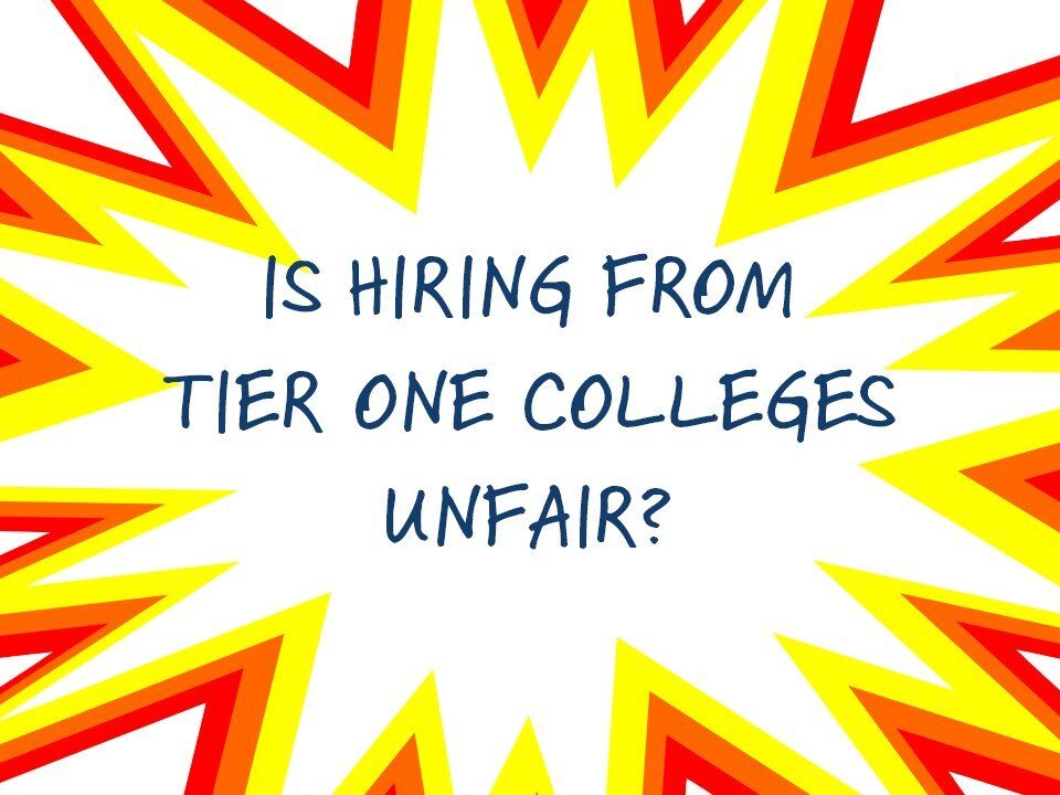Hiring from Tier1/ Tier 2 Colleges is Unfair